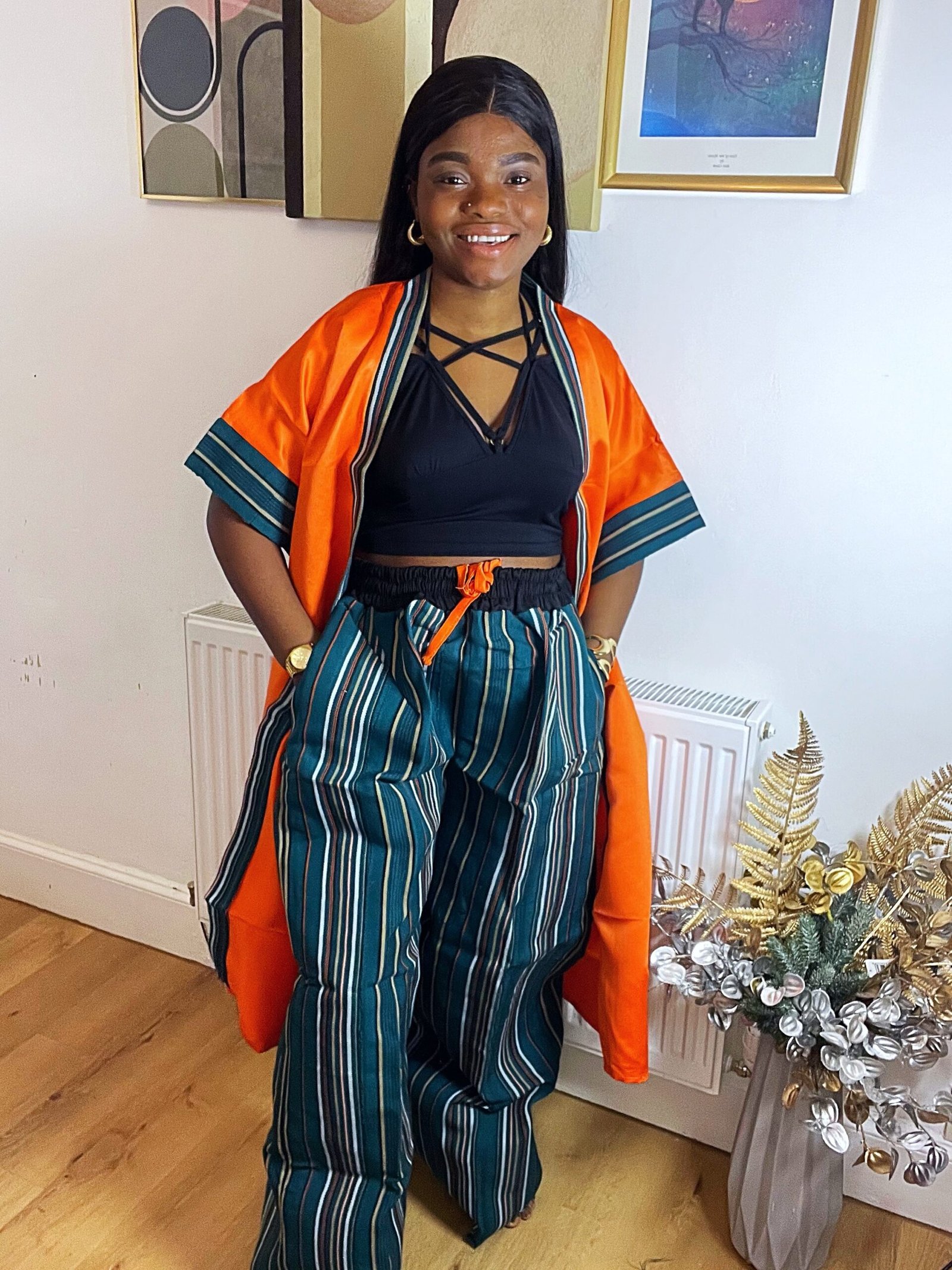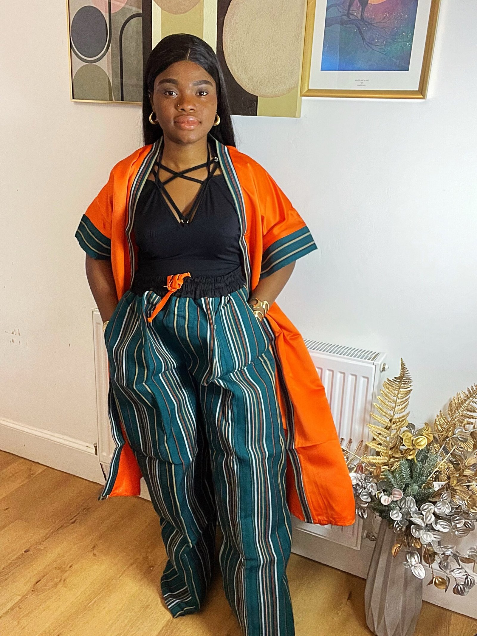 Make a bold fashion statement with the Crimson Royale Kimono Set, a stunning three-piece outfit designed for women who love elegance with attitude.
